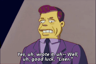 Yes, uh, wrote it, uh-- Well, uh, good luck, "Liser." Thanks! I'll see you in heaven! Uh, yes, er, heaven. Oh.