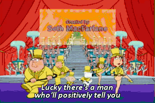 Lucky there's a man who'll positively tell you all the things that make us laugh 'n' cry He's a family guy welL, Everything's all set for Stewie's birthday party.