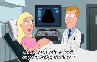 Okay, let's take a look at your baby, shall we? Hi. He'll be right back. He's in the bathroom.