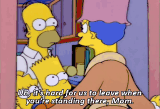 Uh, it's hard for us to leave when you're standing there, Mom. Push her down, Son. No one's going anywhere.
