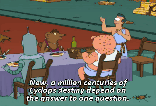 Now, a million centuries of Cyclops destiny depend on the answer to one question. Leela, will you marry me? No. No. Yes, I will! Oh! They're getting married.