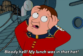 Bloody hell! My lunch was in that hat! Egg and chips with jam booties!