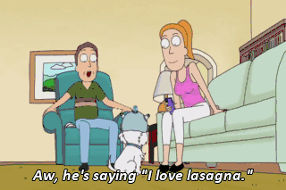Aw, he's saying "I love lasagna." He's saying "I love Obama." So cute! I'm posting this online, like, right now. I should call Bob Saget. Is that still a thing?