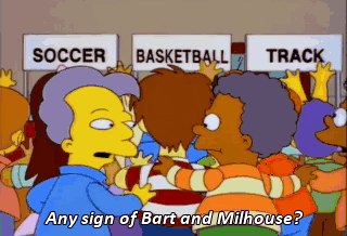 Any sign of Bart and Milhouse? No. And if they don't get here soon, it'll be T.S. for them.