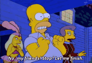 No, my friends! Stop! Let me finish. We could tear it down, but we'd be tearing down a part of ourselves. You could close down moe's or the kwik-e-mart