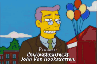 I'm Headmaster St. John Van Hookstratten. Ten-four, Princess. Is that your beer tent? Ow! Monkeys point. Monkeys cry. This campus is so lush and verdant.