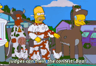 judges can't win the contest! Boo! You have robbed us of our dignity. Well, you-- A urinal cake! You, sir, have crossed the line.