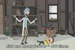 Rick and Marty forever -- 100 times. Over and over, rickandmortyadventures.com. WWW, rickandmorty.com. www.rickandmortyadventures. All 100 years. Every minute, rickandmorty.com. www.100timesrickandmorty.com.