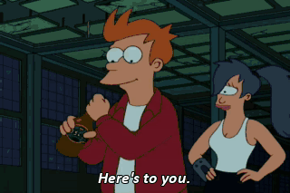 Here's to you. Hey, that's my last beer, you bastard! I'll kill you! I'll kill you, too, buddy. I'll kill you, too. Hey!
