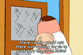 There's a big world out there just waiting for us to grab it by the short hairs! Damn! Let's go.