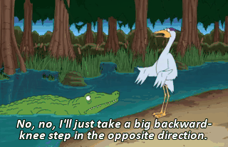 No, no, I'll just take a big backward-knee step in the opposite direction.