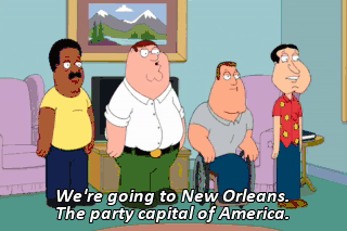 We're going to New Orleans. The party capital of America. Home of the All-You-Can-Pee Street. I'll tell you one thing, it's all about the beads down there. We all know what's going on here. It's just implied,