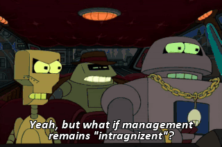 Yeah, but what if management remains "intragnizent"? From the context, it is clear what you mean.
