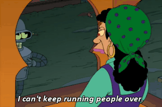 I can't keep running people over. I'm not famous enough to get away with it.