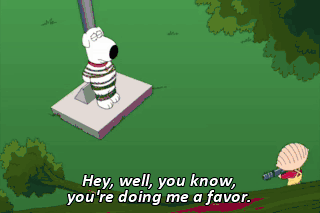 Hey, well, you know, you're doing me a favor. I've had enough. I can't live with that stupid family anymore. Do me a favor and end it all for me, will ya? Delighted to oblige, Brian.