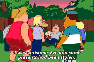 it was Christmas Eve and some presents had been stolen. Reach for the sky, dirtbag! All right, pal! You've stolen your last Christmas. Ugh.