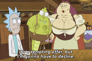 It's a tempting offer, but I'm gonna have to decline. Rats! What a shame.