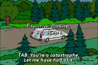 TAB: You're a catastrophe. Let me have half of it.