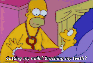 Cutting my nails? Brushing my teeth? No, no. Could you wear the Mr. Plow jacket? just, uh, for fun. Oh.