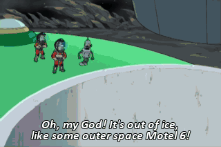 Oh, my God! It's out of ice, like some outer space Motel 6! Completely out of ice! This could mean the end of the banana daiquiri as we know it! Also life.