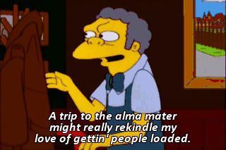 A trip to the alma mater might really rekindle my love of gettin' people loaded.