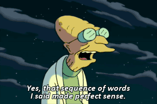 Yes, that sequence of words I said made perfect sense. We really should tell Bender there's nothing to be afraid of. Huh?
