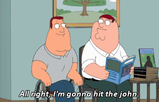 All right, I'm gonna hit the john.