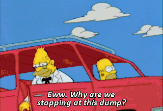 Eww. Why are we stopping at this dump? That's the house you grew up in, Son. Wow! Let's go find that hot-dog tree I planted.
