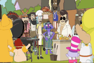 Wait. Noooooo! Shoot. Now look. It's like a "Where's Waldo?" page. Can you find me? Check out all these zany characters. We'll be right back after these messages.