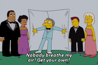 Nobody breathe my air! Get your own! (BREATHING HEAVILY) Why you selfish little maggot, I'll suck your lungs dry! Knock it off! (ALL BREATHING HEAVILY) MAN: Okay...