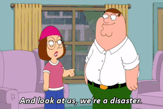 - And look at us, we're a disaster. - Eh. Watch it. You're a total and complete embarrassment in every possible way. Take a good look at yourself, Peter Griffin.