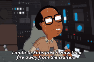 Lando to Enterprise! Draw their fire away from the cruisers! We're having tea, thank you very much. Yes, tea.