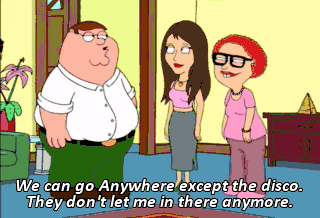 We can go Anywhere except the disco. They don't let me in there anymore. Ow! Oh! Crappy Mexicans and your glass candy!