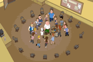 (ROCK MUSIC PLAYING) (INDISTINCT) (SIGHS) Look at this, Brian, somewhere in Quahog there's a kid not being picked up from baseball practice. And it's all thanks to us.