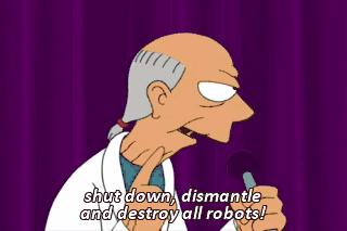 shut down, dismantle and destroy all robots! No! Wait! Surely there's a better-- The conference is over. I must go now to help collect cans on jupiter. Peace out, y'all!
