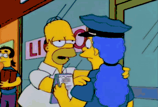 Whoo, whoo, whoo! Ha, ha! Homer, taking an officer's cap is an arrestable offense. Ooh! What are you gonna do about it? What are you gonna do? Ooh, I'm Officer Marge. I'm gonna arrest you.
