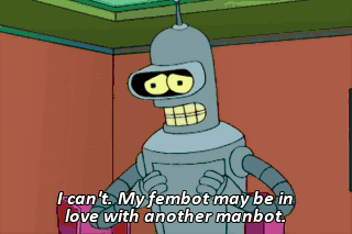 I can't. My fembot may be in love with another manbot.