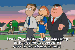 Look, They better not be expecting us to give money because I gave at church last Sunday,