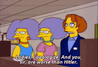 Ladies, I apologize. And you, sir, are worse than Hitler.
