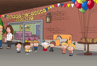What a great little party, Janet. You know, I've never seen Stewie come out of his shell so much. Oh, no. It's not on his tail. It's on his face. I've ruined it.