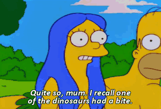Quite so, mum. I recall one of the dinosaurs had a bite. And, well, that was the last of-- Egad! Please stop eating that. God's going to be furious.