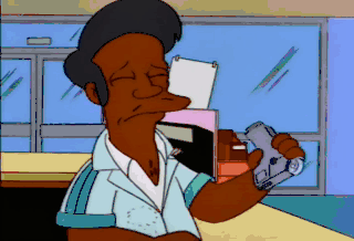 Oh! Fired after all these years of loyal service. I don't want to live anymore! Oh! Give me that wiener! No! I don't want to live, sir! Give me that wiener! No, Apu! It's not worth it!