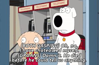 (BOTH GASPING) Oh, no. I have chateau'ed myself. (GROANS) Damn it. He died before he could tell us anything.