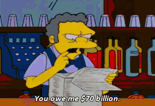 You owe me $70 billion. Hmm? No. Wait, wait, wait. That's for the Voyager spacecraft. Um, your tab's $14 billion.