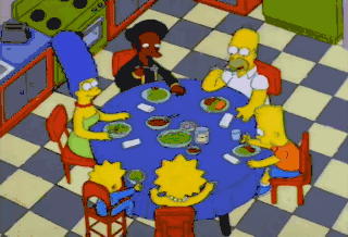 Pass the chutney. Apu, you've been so helpful. If it weren't for him, we'd still be in line at the Monstromart. And he taught me how to play the shehnai. That's even worse than the album Grampa released.
