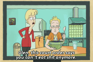 Glen, this court order says you can 't eat shit anymore. All right, Jerry. When you're right, you're right.