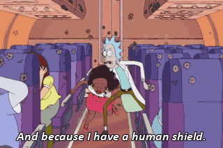 And because I have a human shield. Mrs. Pancakes! Oh, no, Morty. His subconscious is panicking. Run!