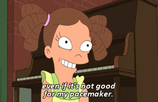 even if it's not good for my pacemaker. ALL: Aww! (GASPS) (SOBBING) (WHISTLES) That is one quality pacemaker.