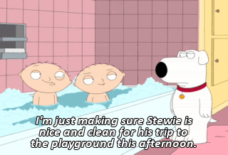 I'm just making sure Stewie is nice and clean for his trip to the playground this afternoon.