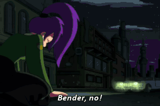 Bender, no! Fry, stay back! You jerk! I thought I was your best friend. What kind of two-timing killmobile are you?